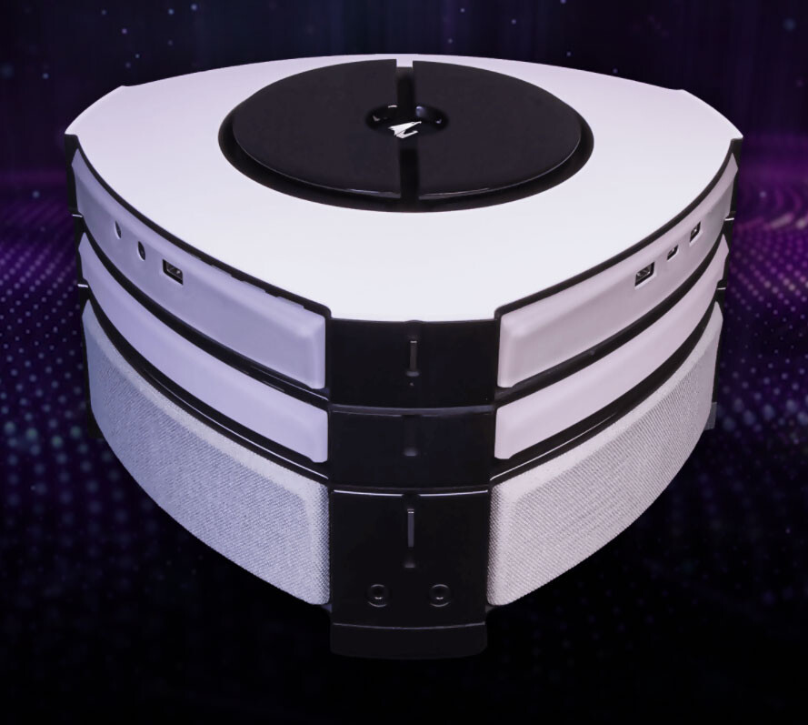 Project Cielo features a modular design for endless possibilities. Consisting of three parts, the top is the main PC system; the middle is the battery module; and the bottom is the Bluetooth speaker module. Users can mix and match any of these three to form different configurations according to their needs. While at home, the main PC system and the speaker module can be joined as an entertainment center. The Bluetooth speaker module can also be stacked with the battery module to become speakers for smart devices. The combination of the main PC system and the battery module also makes it possible for gaming on the go. Players could enjoy the constraint-free PC gaming experience anytime, anywhere brought by 5G.