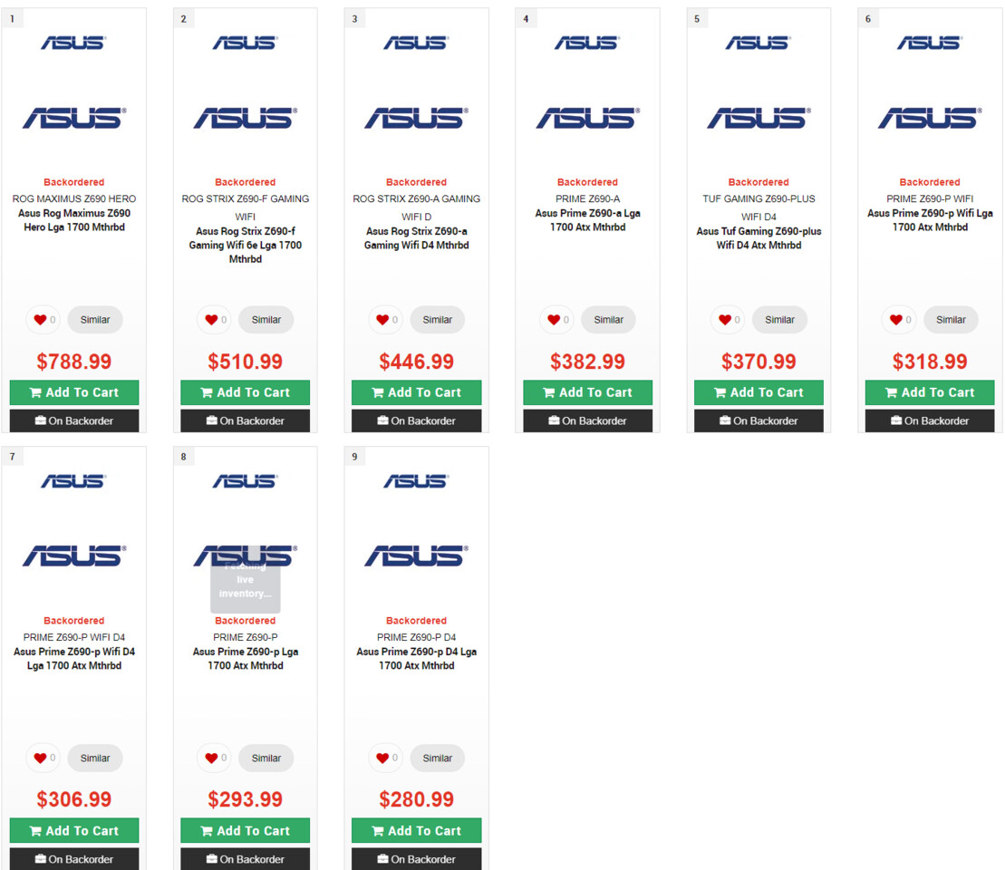 ASUS Z690 Motherboards Listed by Canadian Retailer