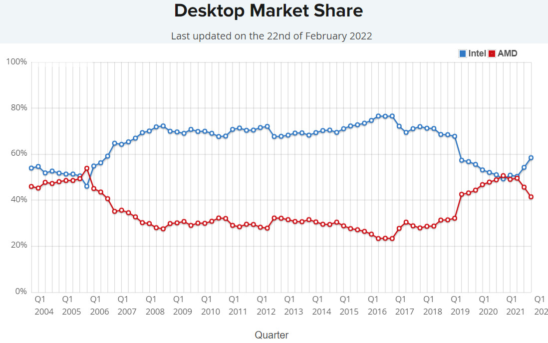 Intel’s Global CPU Market Share is on the Rise, AMD Starts the Downfall