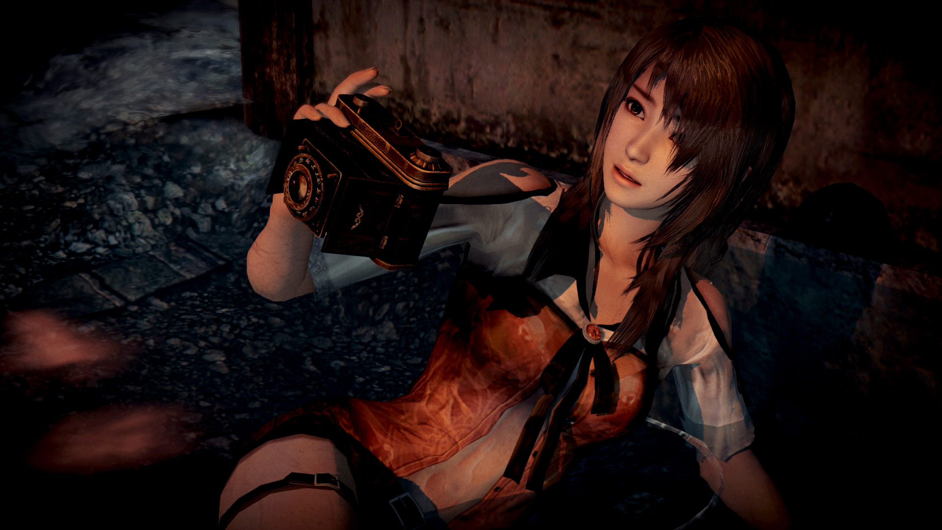 While the series condenses the essence of Japanese horror in each title, we decided on a different type of fear as the overarching theme for each game. For the upcoming Fatal Frame: Maiden of Black Water, we use the motif of Japanese “haunted places,” and the ability of the player to take their camera and walk around these stages. The main theme for this particular entry in the series is “fear related to water.” To accomplish this, we made sure many of the locations were very damp to give them the feel that a ghost could appear at any time, a theme that is very common in Japanese horror.