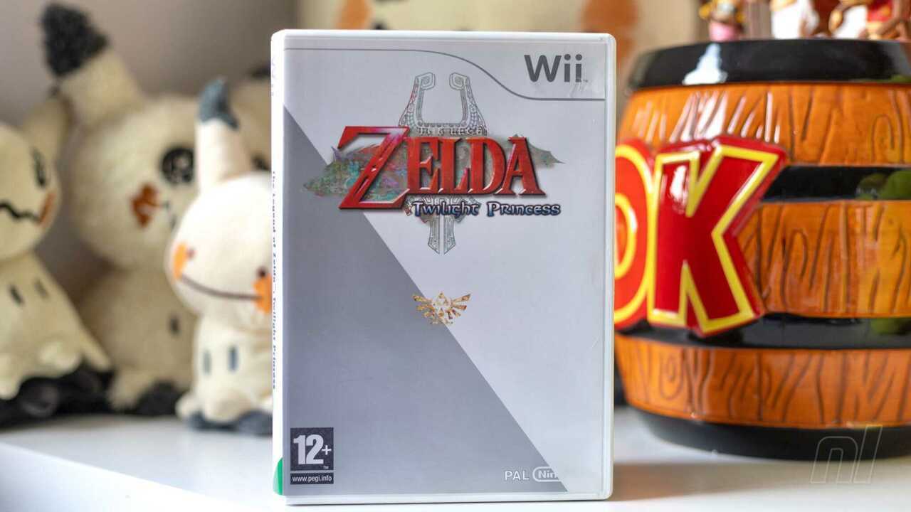 This boxed version of The Legend of Zelda: Twilight Princess looks like an unfinished version of the final art for the full game. The components of the key art are all there — namely, the diagonal colour split and the Triforce in the middle — but without Link or Wolf Link’s faces there, or the saturated yellow where the white is on the box.