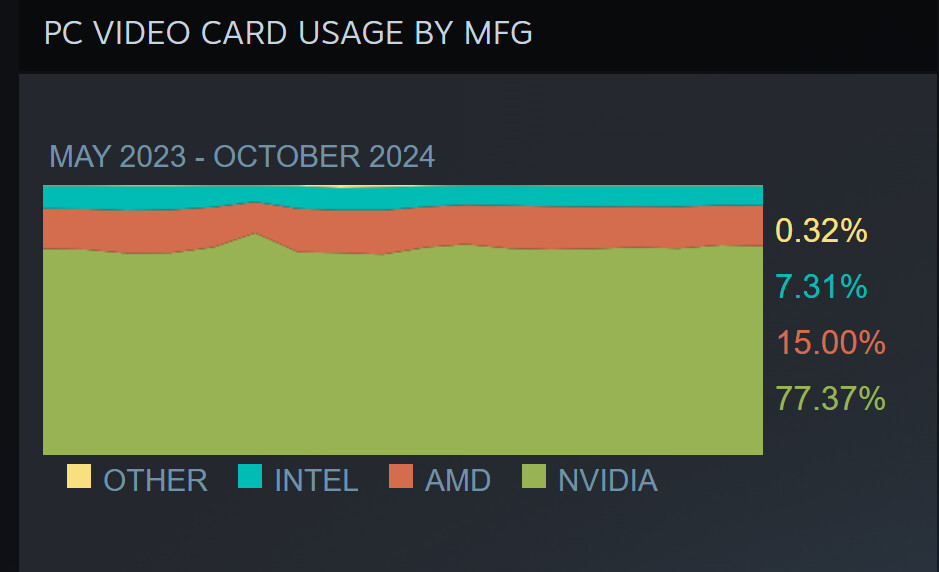 Steam Survey October 2024 Update: Not a Single AMD GPU in Top 20, Radeon RX 6600 Replaces RX 580 as AMD’s Most Popular SKU