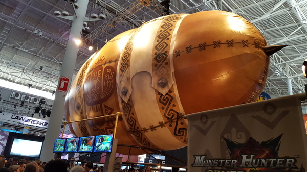 PAX East was the first-ever US event debuting the demo for Monster Hunter Generations! By the end of it everyone’s voice felt like a Tigrex’s, but it was worth it to see all the happy hunters. In MH Generations, you’ll be visiting towns both past and present, and traveling between them via an airship – and what better way to celebrate than with an airship of our own? MH Generations demos were playable on the deck of the massive balloon airship, which stood out on the show floor and made a handy point of reference for navigating the walkways – you always knew where the monsters were, no paintballs or tracking required.